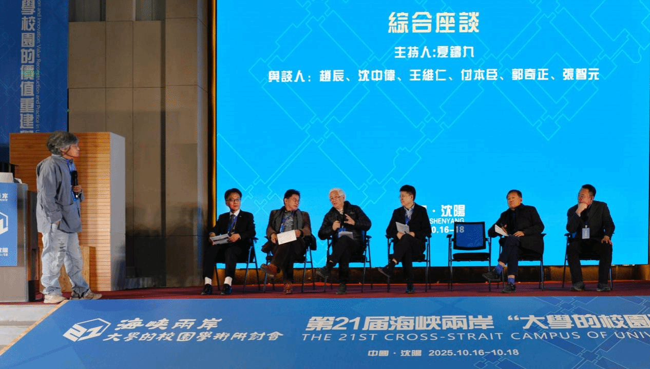 在“百年变局下的大学转型”分论坛中,南京大学教授赵辰、我校教授刘万里、东海大学教授薛孟琪、香港大学教授王维仁、深圳大学教授付本臣及逢甲大学教授张智元先后发表演讲。随后进行的第一次综合座谈由夏铸九主持,赵辰、沈中伟、王维仁、付本臣、东海大学教授郭奇正、张智元等两岸学者与参会师生展开深入交流,现场讨论热烈,交流富有成效。