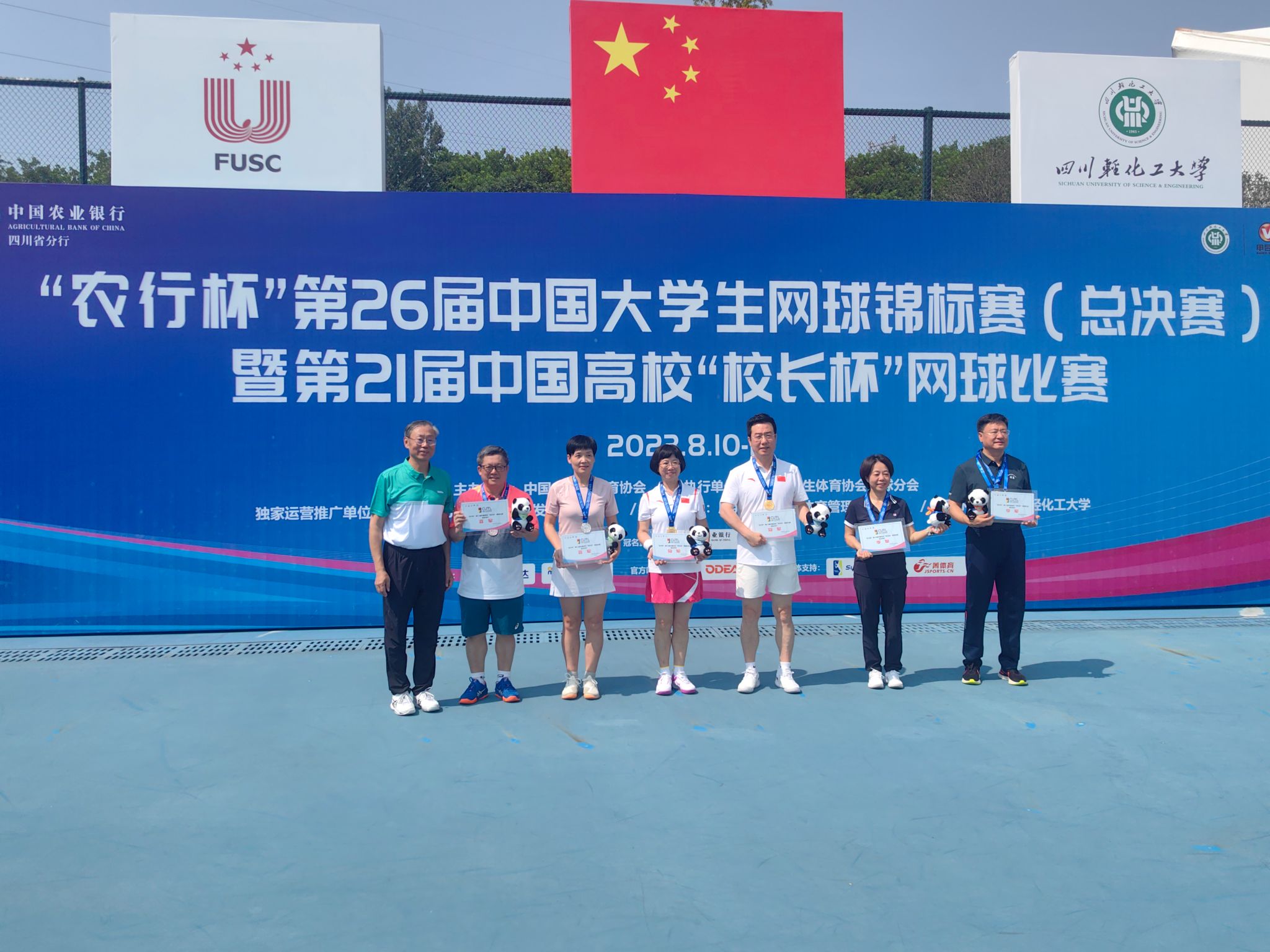 8月12日至16日,第26届中国大学生网球锦标赛总决赛暨第21届中国高校“校长杯”网球比赛在四川轻化工大学举办,我校校长严文复,党委常委、纪委书记、监察专员王利印参加了混双组比赛并获得冠军,严文复获得最佳进步奖。