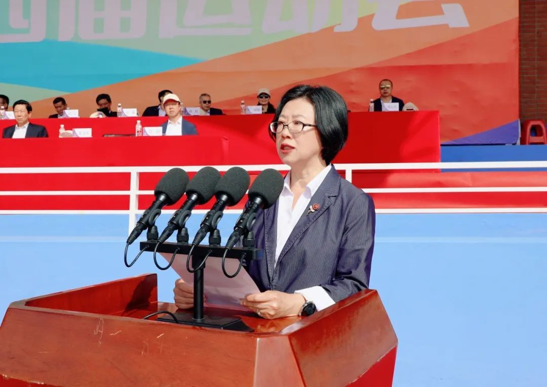 校长严文复致开幕词。她表示,学校始终坚持“五育”并举,秉承“以体育人”的工作理念,持续深化体教融合,促进学生全面发展,竞技体育捷报频传,校园体育蔚然成风。她指出,本届运动会不仅是一场体育竞技的盛会,更是一次凝聚共识、激扬斗志的动员,希望全体运动员发扬奥林匹克精神,以饱满的热情投入比赛,赛出风格、赛出水平;希望全体裁判员恪守“公平、公正、公开”原则,以严实的作风确保赛事安全有序;希望全体师生员工树立“安全为重、团结为要”的理念,文明观赛、热情助威,共同营造和谐奋进的赛场氛围,让运动会成为展现建大人精神风貌和文明素养的窗口。