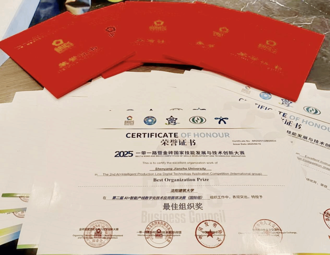 6月16日,2025第九届“一带一路”暨金砖国家技能发展与技术创新大赛之第二届AI+智能产线数字化技术应用赛项决赛在吉林省辽源市落幕。由我校国际学院14名留学生组成的7支代表队勇创历史最佳战绩,荣获国际组一等奖1项、二等奖1项、三等奖2项,同时荣获“优秀组织奖”“最佳组织奖”两项团体荣誉,三名教师荣获“优秀指导教师奖”,彰显了我校在国际化技术技能人才培养上的突出成果。
