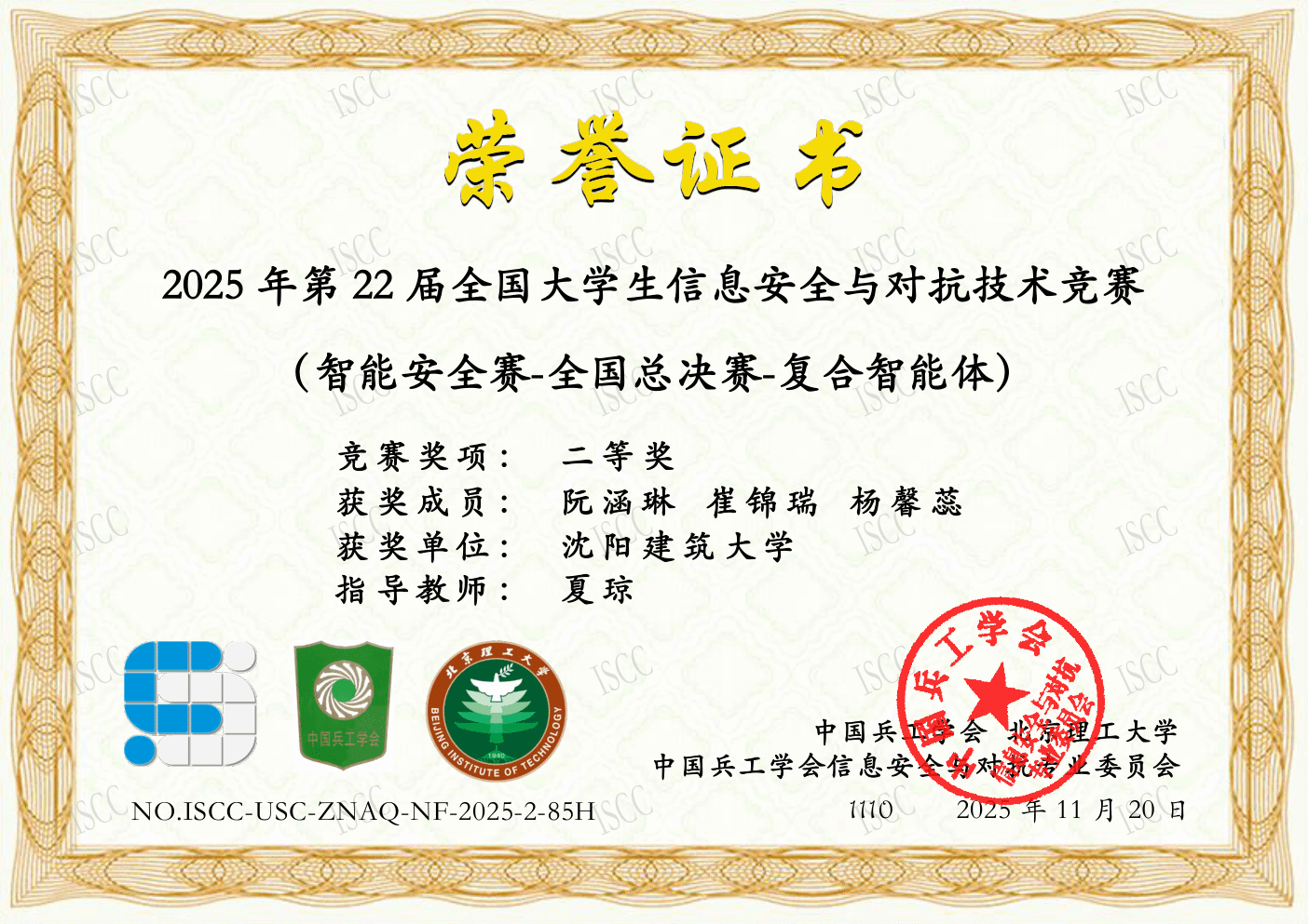 近日,由中国兵工学会、北京理工大学主办的第22届全国大学生信息安全与对抗技术竞赛(ISCC2025)全国总决赛在西南林业大学落下帷幕。来自全国313所高校1596支队伍的3000余名参赛学生,围绕智能安全领域核心技术及应用展开竞技交流。我校电气与控制工程学院团队取得优异成绩,荣获全国一等奖、二等奖、三等奖各1项。