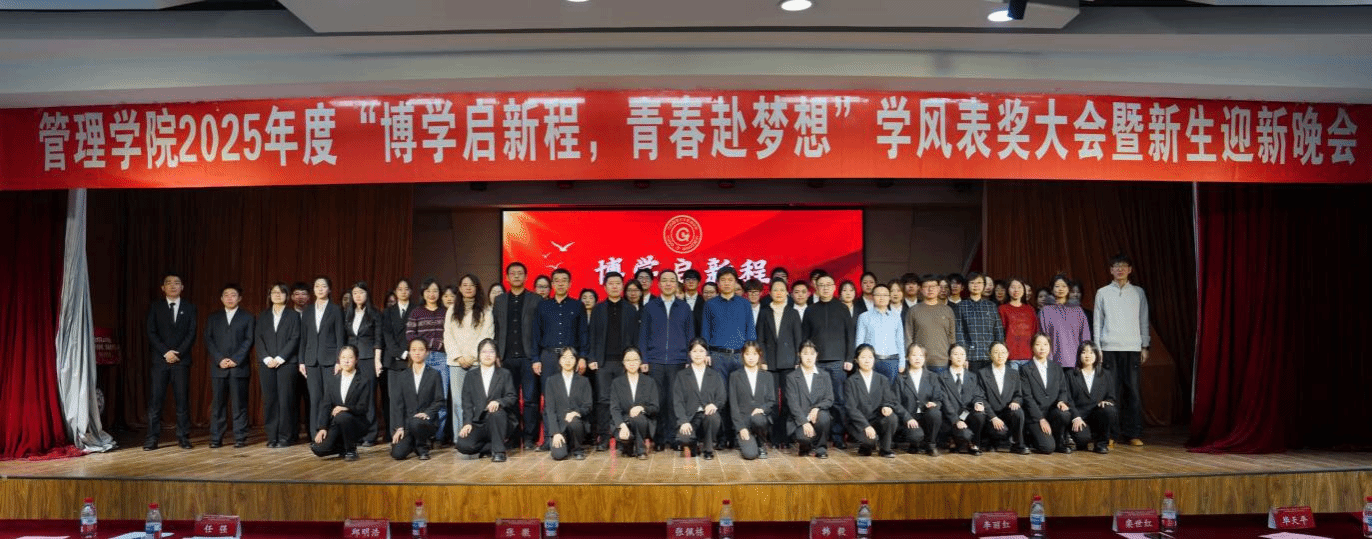 12月18日,管理学院在大学生活动中心三楼举办“博学启新程,青春赴梦想”2025年度学风表彰大会。学校党委副书记张佩栋出席大会,校团委负责人,学院领导班子成员、全体辅导员及学生代表共300余人参加了大会。