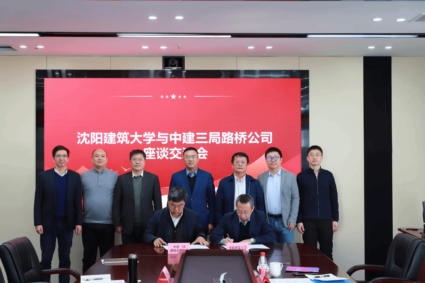 在中国建筑第三工程局有限公司,栾方军一行参加了校企交流座谈会。中建三局党委副书记、工会主席陈珍敏等领导参加会议。栾方军提出三方面合作倡议,一是强化实践教学与行业场景对接,二是深化校企协同与人才培养联动,三是推进产研融合与科研合作赋能。陈珍敏表达了在定向人才输送、加强科研成果共创和实习基地建设等领域的合作愿景。双方就合作事宜进行深入磋商,最终在资源要素互补对接等关键方面达成战略共识,签订了校企合作协议。