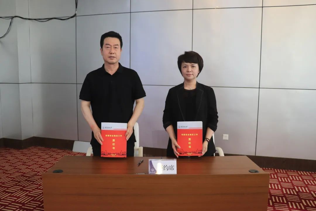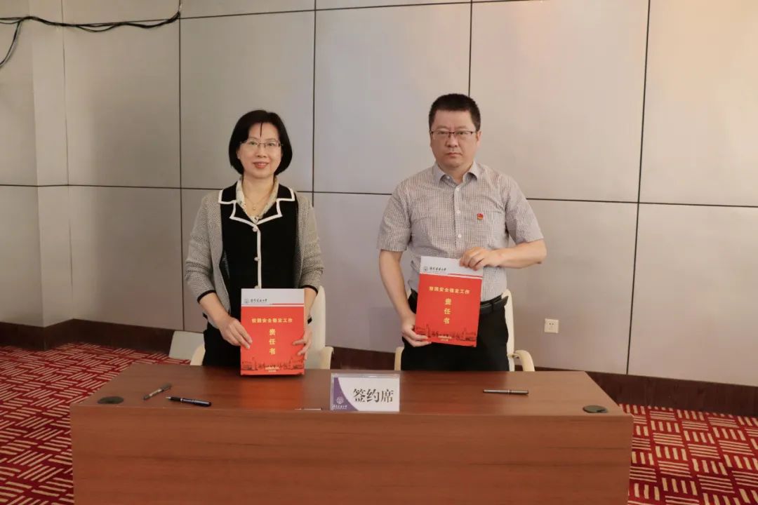 会上,严文复、王利印分别与分管部门、单位或联系单位的负责人签订了《校园安全稳定工作责任书》。