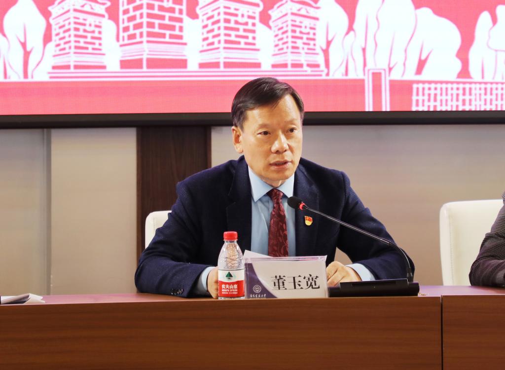 董玉宽代表学校党委对学校党史学习教育开展情况进行了全面总结。他指出,党史学习教育开展以来,学校党委认真学习贯彻习近平总书记关于党史学习教育的重要讲话和重要指示批示精神,贯彻省委、省委教育工委的工作要求,在省委教育工委第五巡回指导组的有力指导下,圆满完成了党史学习教育各项任务。他从“强化政治引领,坚持以上率下,全面压紧压实学校党委主体责任”“坚持学思践悟,知行合一,以高质量的党史学习教育推动学校高质量发展”“坚持深学细研,感悟思想伟力,不断增强信仰信念信心”“挖掘红色资源,打造红色文化,传承赓续红色精神血脉”“组织专题调研,聚焦急难愁盼,大力开展‘我为师生办实事’实践活动”“坚持立德树人,创新人才培养,努力培养堪当民族复兴重任的时代新人”“注重学习交流,营造浓厚氛围,党史学习教育接地气、有声势、见实效”七个方面,全面总结回顾了学校党史学习教育开展情况和取得的成效,并对如何总结好、巩固好、拓展好党史学习教育成果作出部署。