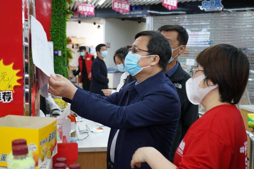 阎卫东一行分别来到学校东门入校物资集中消毒点、第一餐饮中心、电动车充电点、天猫超市、建苑里、校园围墙、实验室等区域,听取有关部门疫情防控工作及相关情况汇报,对校门管控、物资消毒、餐饮卫生、食品质量、保供稳价、围墙管理、实验室安全等有关防控措施落实和安全管理情况进行检查。校领导对各单位、各区域疫情防控工作给予了充分肯定,对存在的薄弱环节提出了即知即改、立行立改的工作要求。
