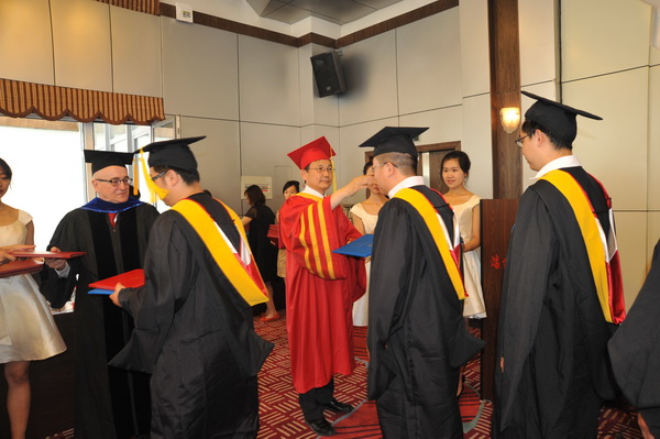 典礼上,石铁矛和威廉姆•卡罗代表两校为毕业生授位、颁发学位证书,并分别发表讲话。张昶代表全体学员发言。