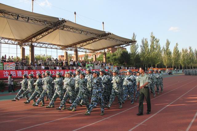 9月14日下午,我校2012级学生军训阅兵暨总结表彰大会在体育场隆重举行。学校领导吴玉厚、王军、王强、郑朝方、王宝令、刘娇,以及辽宁省军区学生军训办公室主任代亚军大校,沈阳军区第39军116师牛中源少校出席了大会。学校有关部门负责人,各学院党政负责人、辅导员,全体军训教官及2012级新生参加了大会。