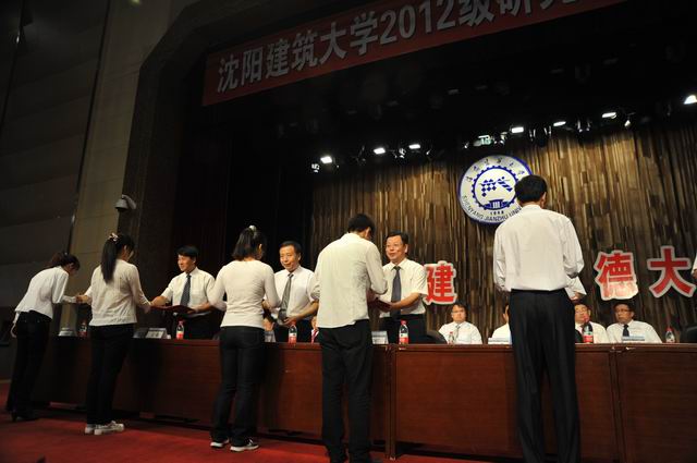 9月6日上午,学校在文体馆隆重举行2012级研究生开学典礼,学校党委书记吴玉厚、校长王军,党委副书记王强,副校长李成滨、石铁矛,总会计师郑朝方出席了典礼,各研究生培养单位负责人、2011年度优秀研究生指导教师代表,全体研究生辅导员、研究生教学秘书以及2012级研究生参加了典礼。典礼由党政办公室副主任许占利主持。