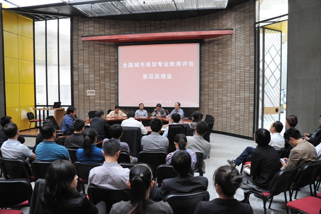 以同济大学赵民教授为组长的全国高等教育城市规划专业教育评估专家组一行,经过4天的辛勤工作,结束了对我校城市规划专业本科和研究生教育的评估视察工作。5月16日下午,城市规划专业评估反馈会在博物馆报告厅举行。专家组成员,学校领导吴玉厚、王军、李成滨、石铁矛出席了会议。