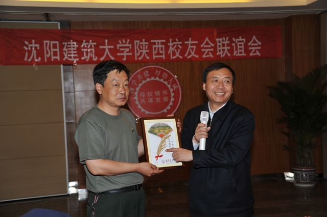 联谊活动中,吴玉厚代表学校向陕西校友会赠送了用学校稻田稻穗制作的精美工艺品,并祝校友幸福安康,事业顺达,心想事成。
