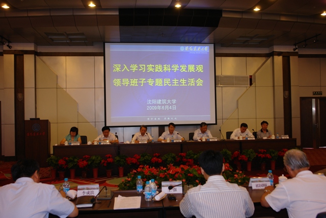 按照学校深入学习实践科学发展观活动的工作部署,6月4日下午,沈阳建筑大学在办公楼301会议室召开了学校领导班子专题民主生活会。党委书记张福昌、校长吴玉厚、党委副书记王强、副校长刘军、李成滨、石铁矛、总会计师郑朝方、校长助理王宝令参加会议并作发言。辽宁省教育厅厅长魏小鹏、省委高校工委干部组织处处长翟文豹、辽宁省委学习实践活动第九检查组组长马志佳及成员张伟、高玉英、辽宁省教育厅办公室主任于洪江全程参加会议。学校党委委员、干部代表、离退休老干部代表、民主党派代表、党代表、教师代表、学生代表等三十余人列席会议。会议由张福昌主持。魏小鹏、马志佳分别作重要讲话。