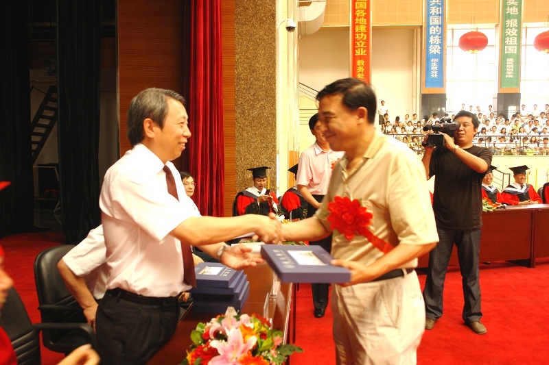 学校领导班子张福昌、吴玉厚、王军、刘万东、张聿成、刘军、李成滨、王宝令、石铁矛、郑朝方,30年前恢复高考首批进入我校的77级校友,每班一个优秀代表孙占琦、于文礼、姜庆君、姚倩、戴显明、赵凯军、张贵森及各学院院长出席毕业典礼。100余名毕业生的家长代表也首次应邀从全国各地赶来,与毕业生们一起分享喜悦和快乐。毕业典礼由学校办公室主任刘长新主持。
