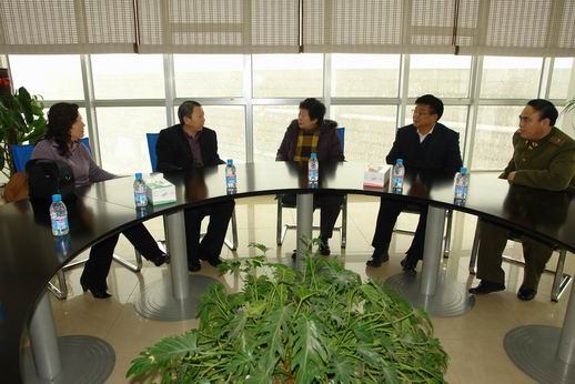 3月4日,室外雪花飞舞,室内暖意融融。沈阳建筑大学为纪念毛泽东为雷锋题词44周年,在雷锋庭院隆重举行了“学习雷锋精神,建设和谐校园”主题活动月启动仪式。仪式开始前,党委书记张福昌亲切接见了与会的来宾。校外辅导员、雷锋班第十五任班长李仕库、抚顺市雷锋小学79岁的老校长刘桂菊、党支部书记喻晓梅、学校党委副书记刘万东和学生代表共同座谈学习雷锋的心得体会。