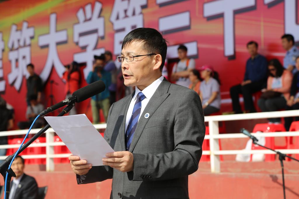 石铁矛致开幕辞。他指出,一年一度的运动会,是学校开展教育教学活动的一件大事,更是学校精神文明建设成果的一次大检阅。近年来,在推进特色鲜明、行业领先的创新型建筑大学的建设中,学校坚持把体育教育作为增强师生体质、锻炼师生意志的重要载体,不断深化体育教学改革,完善体育基础设施,大力加强体育文化建设,开展了丰富多彩的群众体育活动,实现了师生“育体”与学校“育人”的有机结合。