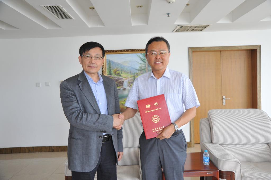 6月15日下午,学校在办公楼5楼会议室举办了兼职教授和研究生指导教师聘任仪式。校党委书记董玉宽、校长石铁矛会见了辽宁大学赫国胜教授,并颁发了聘书。学校党政办、研究生学院和商学院负责人出席了聘任仪式。
