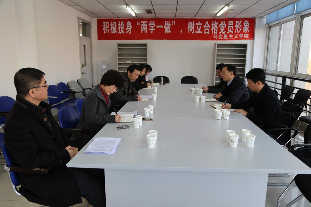 按照学校党委的安排部署,1月15日下午,马克思主义学院领导班子以学习贯彻党的十八届六中全会精神为主题、围绕“两学一做”学习教育的要求,召开了2016年度领导班子民主生活会。学校党委书记董玉宽到会指导。马克思主义学院领导班子成员参加会议,党政办公室、党委组织部负责人列席会议。