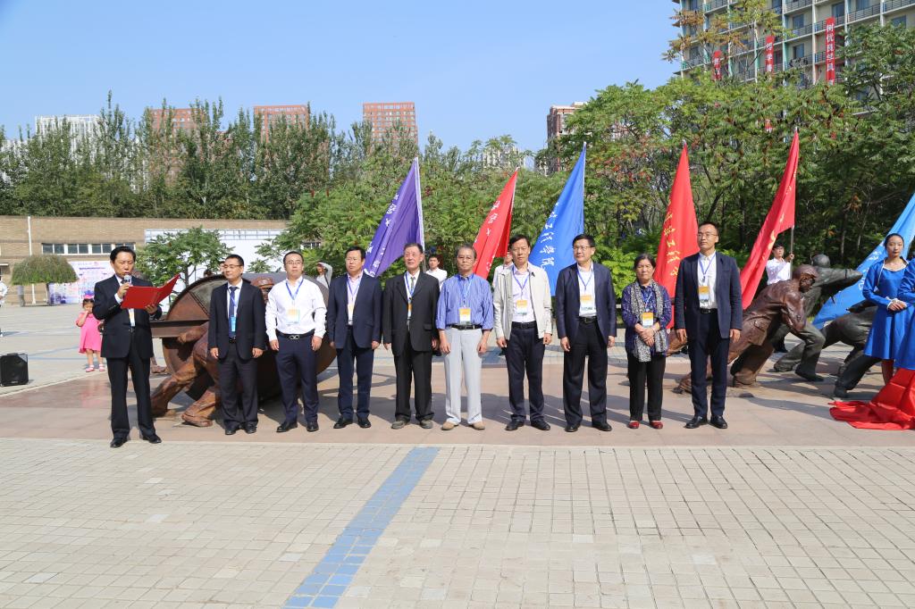 校长石铁矛与张树全校友为“纪念铜像”揭幕
