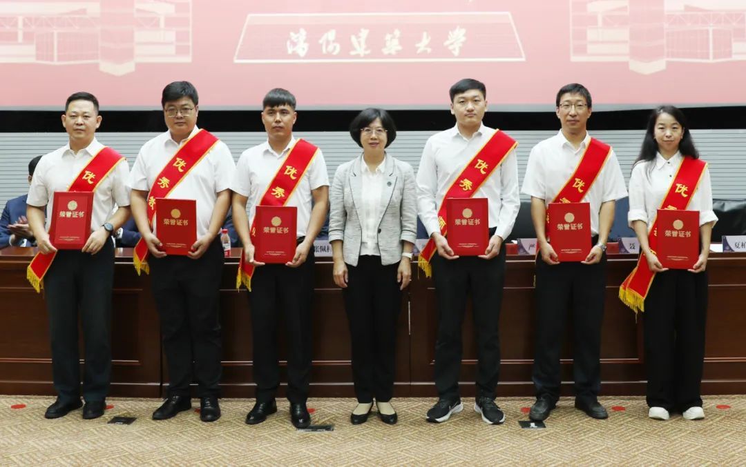 会上,校党委副书记张佩栋宣读了表彰决定。全国教育系统先进工作者、全国高校教师教学创新大赛决赛二等奖获得者、辽宁省本科教学名师等获奖代表,学校优秀教师、先进教育工作者和“从教三十年”荣誉教师等受表彰代表依次上台领奖。
