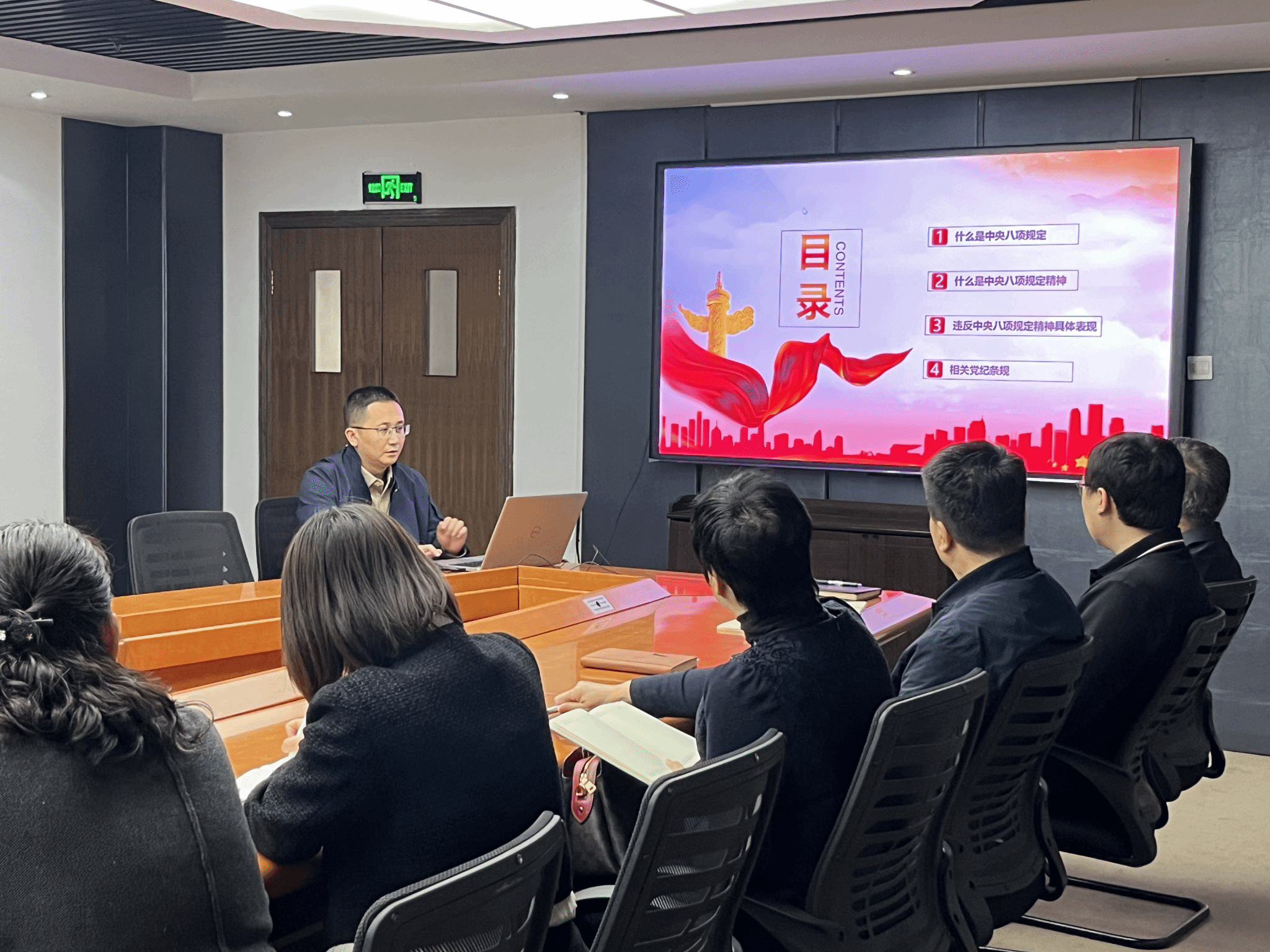 支部副书记刘振鹏以“深入贯彻中央八项规定精神,持续加强作风建设”为主题,围绕“什么是中央八项规定、什么是中央八项规定精神、违反中央八项规定精神的具体体现及相关党纪党规”四个方面,结合典型案例和工作实际,以政策图示的形式对中央八项规定精神及其实施细则进行了系统的解读阐释,为全体党员上了一堂生动的纪律教育课。