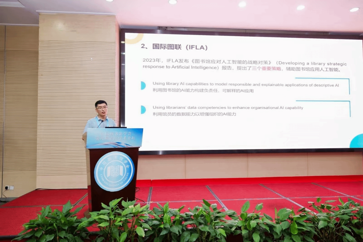 近日,由中国图书馆学会主办、江苏省图书馆学会和南京图书馆承办的中国图书馆学会第九届青年学术论坛在南京图书馆召开,来自全国图书馆界的专家学者、青年代表近300人参加论坛。我校图书馆提交的案例《数智时代高校图书馆智慧服务矩阵的探索与实践》经专家评议后入选交流名单,孙鹏研究馆员应邀在论坛上进行交流发言。