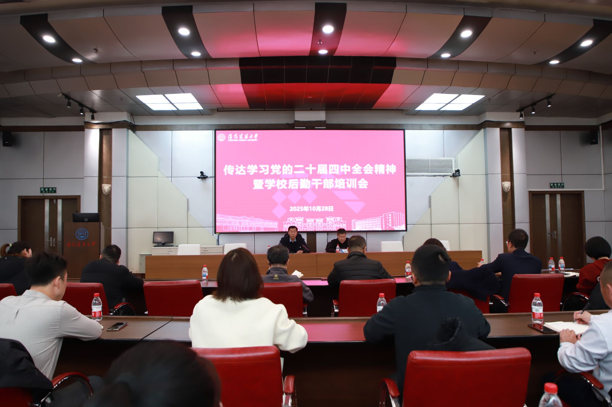 会议要求,全体后勤干部要认真学习贯彻党的二十届四中全会精神,以团结、勤奋、廉洁、高效的过硬作风,推动实现后勤高质量发展,为学校“十五五”规划落地,为建设国际知名、国内一流的建筑大学交出满意的后勤答卷。