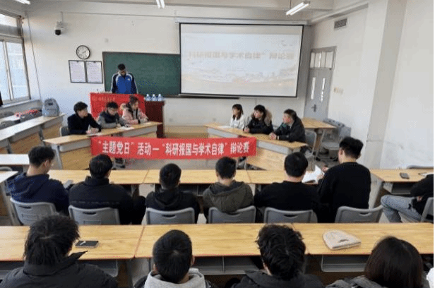 辩论赛以“研究生党员发挥先锋模范作用,更应体现在科研成果的卓越性还是学术道德的纯洁性”为辩题展开,紧扣时代命题与科研实际,使支部党员对“科研报国”的时代内涵与“学术自律”的实践要求有了更为立体、辩证的认识。