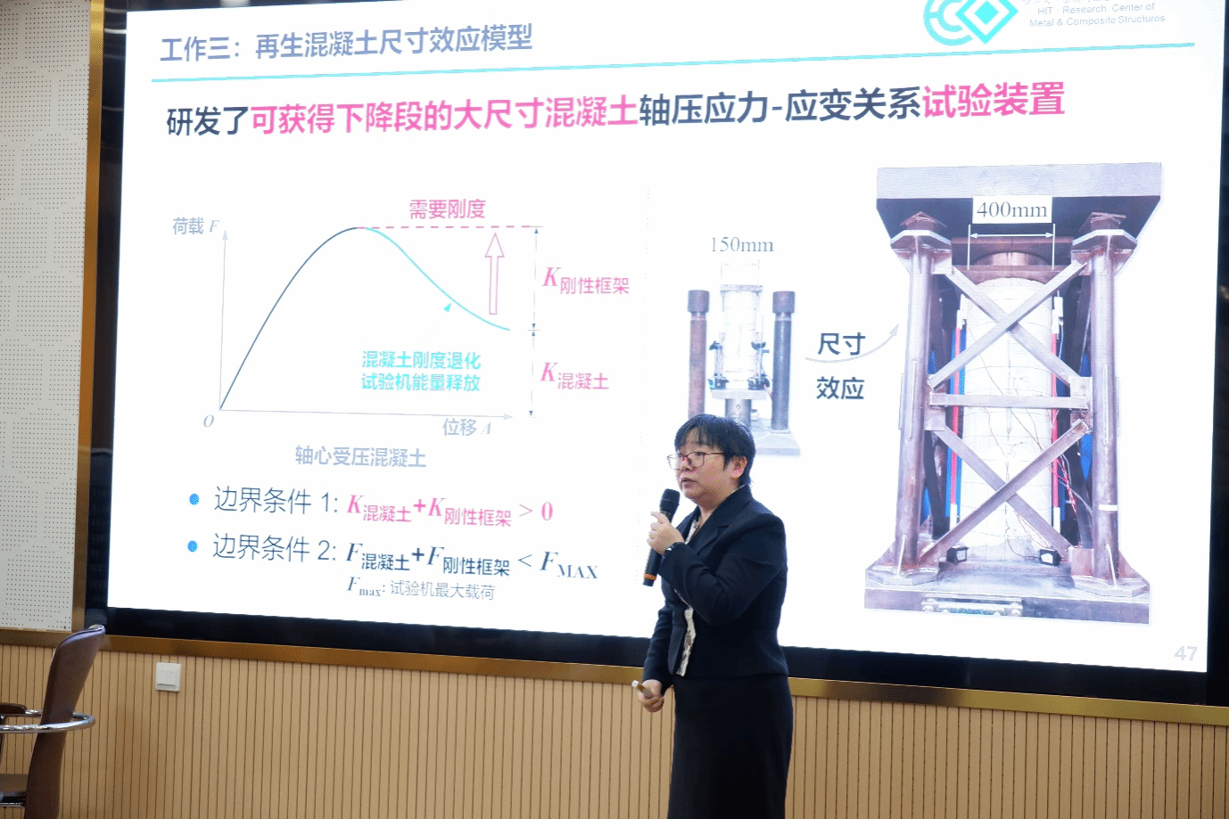 报告中,耿悦针对再生混凝土因多介质、多界面、多骨料来源导致的材料性能难预测、力学性能不确定性大等核心问题,分享了其团队取得的系统性研究成果。该研究通过揭示再生骨料对混凝土应力-应变关系的影响机制,提出关键物理指标表征方法,并构建高精度预测模型,其预测精度较传统模型提升了40%,实现了对多骨料来源、多配制方法、多取代方式再生混凝土应力-应变关系的统一准确预测。耿悦的研究成果被纳入了ISO和中国钢结构协会的标准,为再生混凝土的工程应用提供了重要理论支撑。