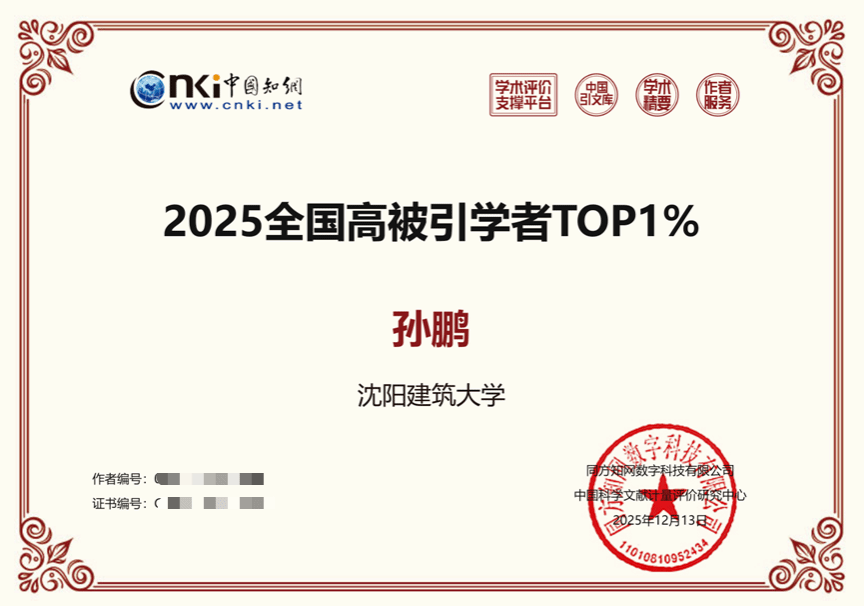 “2025全国高被引学者TOP1%”是中国知网中国科学文献计量评价研究中心依托中国知网所收录的国内学术成果开展的学术评价工作,入选该榜单的学者,其研究成果在国内外学术界具有重要的引领作用和参考价值,是学术影响力的重要标志。