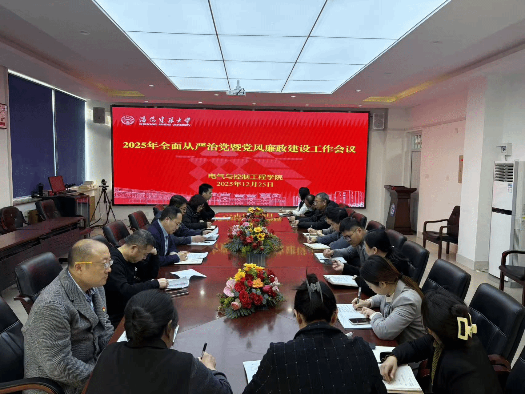 为深入落实全面从严治党要求,推动党风廉政建设持续深化,12月25日,电气与控制工程学院党委召开2025年全面从严治党暨党风廉政建设工作会议,学院党委委员、纪委委员、院长助理、组织员、党支部书记、各系(办、中心)主任参加会议。