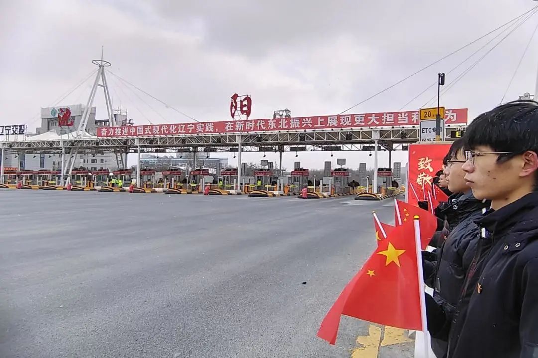 从机场出发,烈士遗骸护送车队驶出机场高速、行进青年大街,依次经过北陵大街、泰山路、银山路、陵园街,驶入沈阳抗美援朝烈士陵园。30多公里的长街,沿途两边,大大小小的电子显示屏循环播放着“英雄回家”“铭记历史、缅怀英烈”等标语,人们走上街头,手拿国旗、心怀敬意,迎接英雄回家。