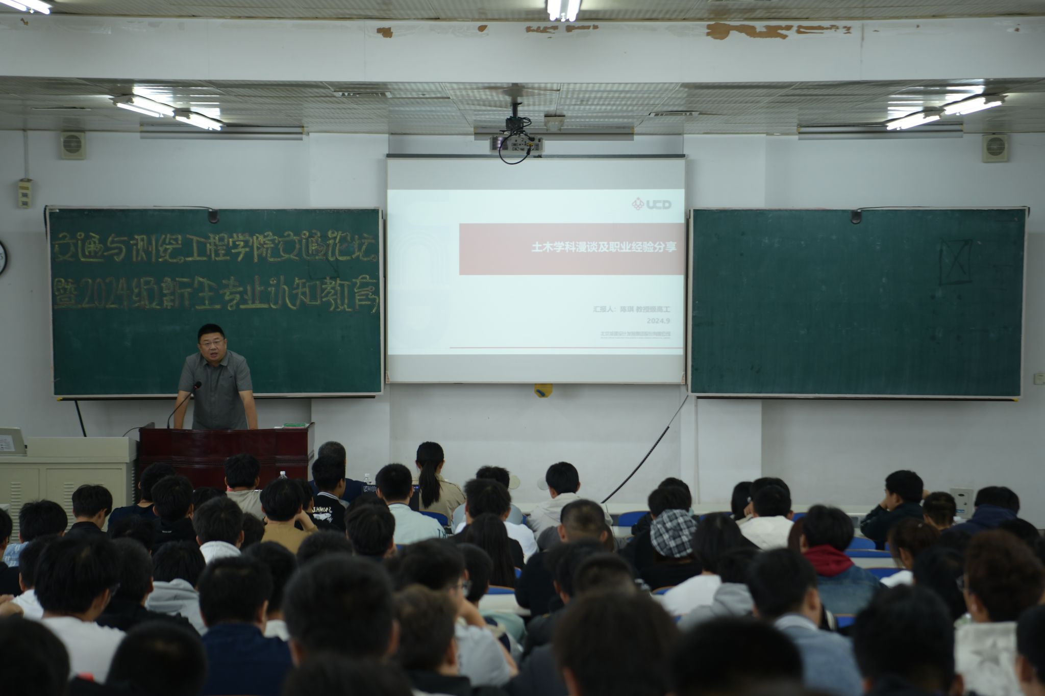 为帮助2024级新生了解所学专业,明确未来方向,激发学习热情,9月25日,交通与测绘工程学院在甲1-401教室举办了交通论坛暨2024级新生专业认知教育活动。学院邀请了北京城建设计发展集团股份有限公司沈阳分院院长、我校交通运输硕士研究生联合导师陈琪作为主讲嘉宾。学院副院长杨彦海,党委副书记、副院长刘裕巍,专业教师代表以及全体2024级新生参加了活动。