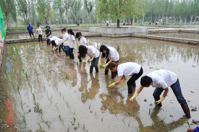 学校举行第十届“稻田书韵 厚德飘香”主题稻田插秧节